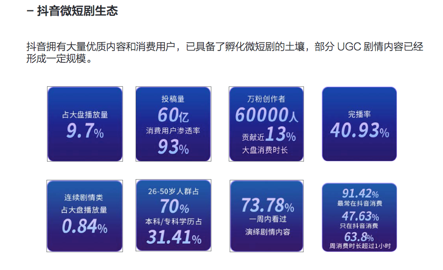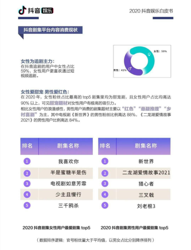 Tik Tok platform has a natural advantage in entering the mini-short drama market. On the one hand, Tik Tok has a huge user group. At present, DAU in Tik Tok has exceeded 600 million. For a long time, the platform has accumulated a large number of drama-chasing groups, cultivated users’ drama-chasing habits, and has already possessed the soil for incubating miniseries; On the other hand, Tik Tok has been deeply involved in the field of film and television publicity for many years, and he can accurately grasp the user’s interest points. However, the miniseries are concise in plot and compact in rhythm, which is highly consistent with the consumer psychology of Tik Tok users. According to the "2020 Tik Tok Entertainment White Paper", the amount of story content submitted by Tik Tok Platform is as high as 5.9 billion, and the penetration rate of consumer users is 93%. Driven by the dual needs of users and the development of the industry, the development of boutique micro-short drama business in Tik Tok can be described as a natural thing.