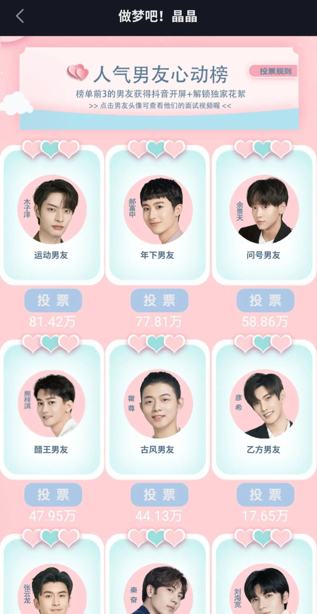 Finally, Dream on! The continuous fermentation of Jingjing’s popularity is also closely related to the innovative marketing game introduced by Tik Tok. The play started with the topic of "blind box", which is popular among young people at present, and successfully attracted the attention of the audience. In Dream on! During the launch of Jingjing, Tik Tok also pushed out the popular boyfriend heartbeat list in the station, calling on users to call for their idols, thus unlocking more exclusive tidbits. By the end of the campaign, more than 400w fans had voted, and KWIN ranked first in the heartbeat list with 814,200 votes. In this way, Tik Tok has fully aroused the enthusiasm of users for pursuing dramas. With the spontaneous participation of a large number of users, it has boosted the second fermentation of the reputation of dramas, thus attracting more "tap water" to join the drama-pursuing camp and continuously increasing the exposure for the dramas.