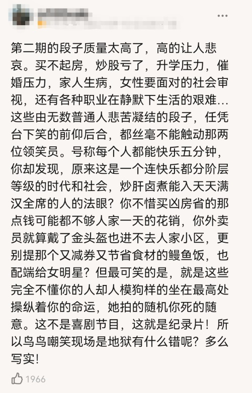 But this "offense" usually points to the superior, not the inferior. The reason why this program makes people angry is precisely because the program group and the lead comedian "bounced" in the audience’s minefield, especially because the lead comedian’s improper lighting and lack of standard judgment standards caused the players to regret leaving. What they offended was the audience with basic appreciation ability, which made people feel a sense of discomfort beyond the text content.